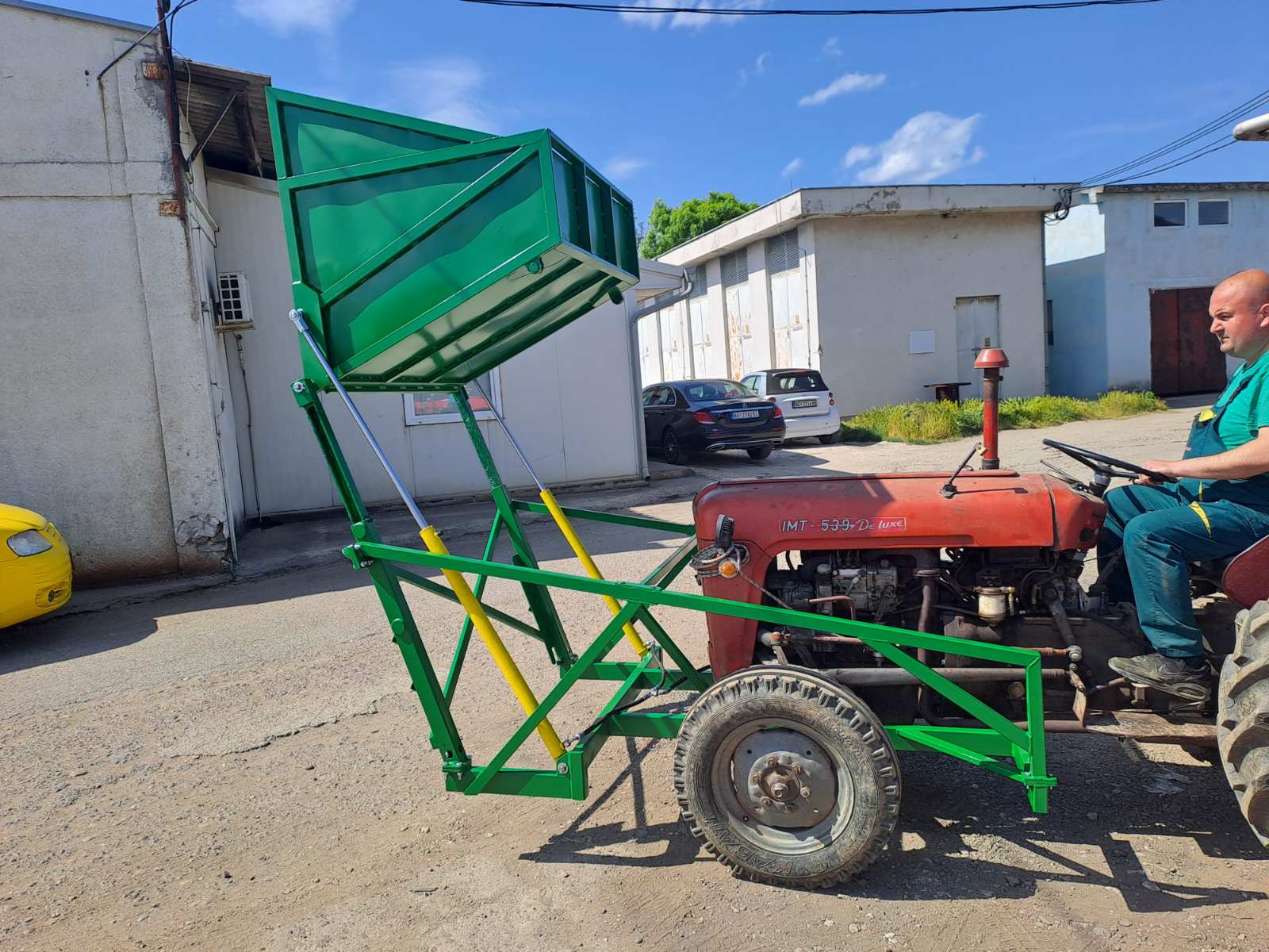 - Machine is operated by min. of 2 workers (driver of the tractor and one worker who removes the boxes).